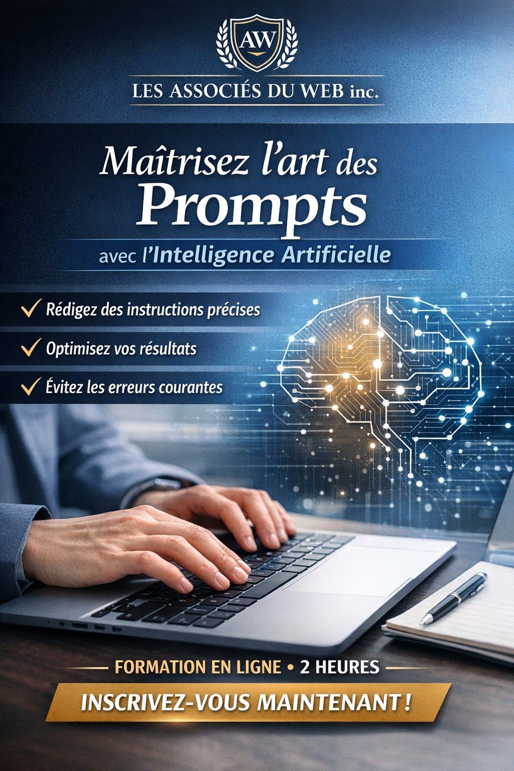 Comment faire de bons prompts ? Apprenez à maîtriser ChatGPT grâce à des techniques de prompts efficaces. Formation pratique pour gagner du temps, améliorer votre productivité et utiliser l’IA au quotidien. Adaptée aux débutants comme aux intermédiaires, cette formation est idéale pour toute personne au Québec désirant améliorer sa productivité grâce à l’IA.